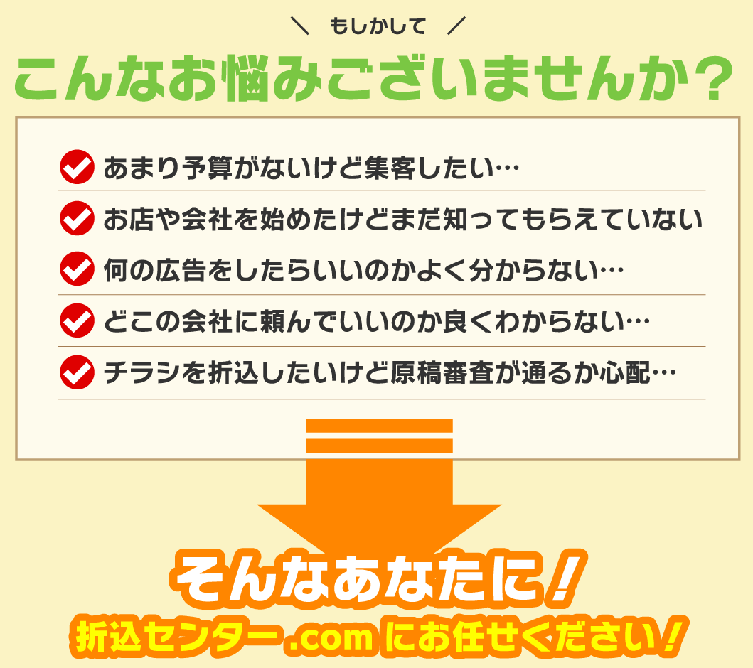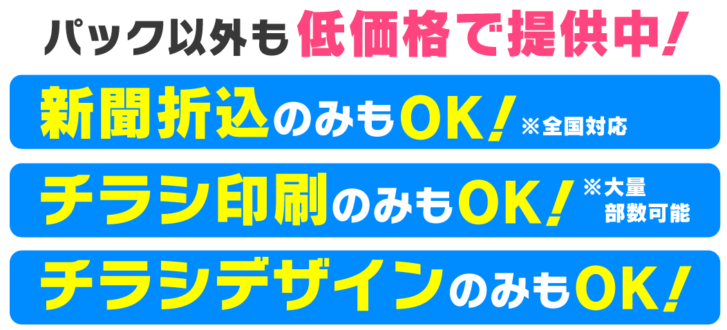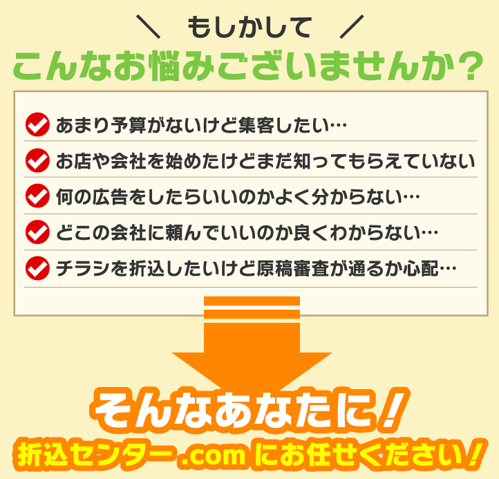 業種や内容によって折込ができない場合がございます。事前にお問合せ下さい。