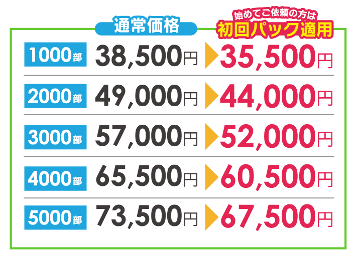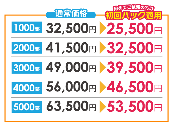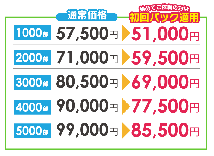 デザインデータがある場合は、簡単な修正後、折り込みをする場合は修正内容に応じて修正料がかかるようになります。例えば、金額や住所の変更などの場合は無料~数千円でご対応可能かと思います。