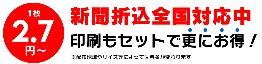 折込には必ず、折込会社の審査が必要となりますので、内容や業種によって折込ができない場合がございます。事前に業種などでできない場合はお受けすることが出来ないことをお伝えさせていただきます。